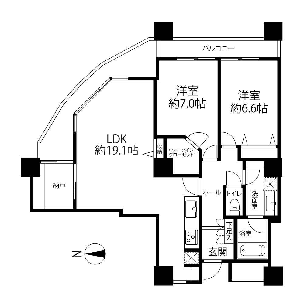 | 間取り | 2LDK+S(納戸) | 専有・建物面積 | 79.77m²(壁芯) |