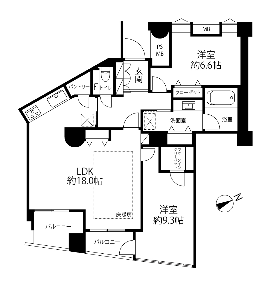 | 間取り | 2LDK | 専有・建物面積 | 87.07m²(壁芯) |
