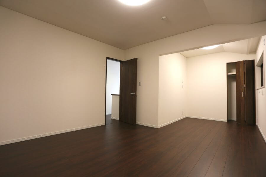かつて住んでいた人は、どう使っていたんだろう。そう思うような変わった間取りを、どういかしていくか。0から新しいものをつくるのではなく、もともとの間取りに手を加え、一部屋一部屋にそれまでとは違う役割を与えます。この物件は、センターリビングという、リビングの四方に部屋が散らばった珍しい間取り。各部屋の繋がりは保ちつつも空間全体を統一感のある雰囲気。閉塞感の原因となっていた既存の梁(はり)を生かして空間にメリハリをつけました。暮らしの中心となる住む人に寄り添う暮らしづくりをコンセプトに設計していきました。
