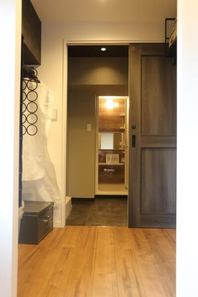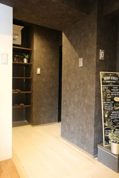 特に色彩には気を使い親しみやすさを目指しました。また玄関ポーチには香りの強い木より杉を選定し、帰ってきた時に木の匂いを不意に感じられるとともに、斜めにパターンをつけて貼ることで既存のガラスブロックから入る柔らかな光が微妙で複雑な陰影を作りだしています。