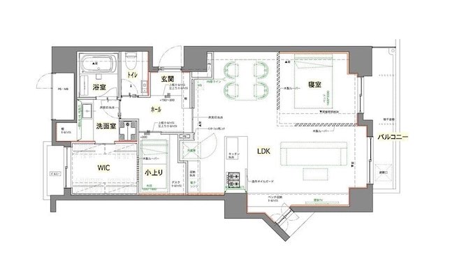 WICは、玄関を右に曲がって正面にある洗面室を通って入るようにしています。洗面室からすぐに行けるので、身支度も時短になりますね。
