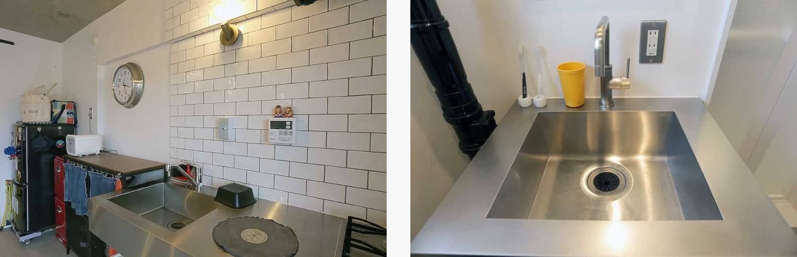 キッチンと合わせて、洗面所もステンレス。こちらはキッチン専用のものですが、水場は統一しようと思い、同じステンレスのものにまとめられました。