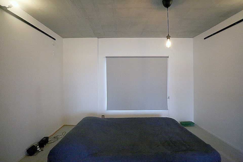 寝室にあるのはベッドのみ。収納スペースを取ったのは、ベッドをいつでも動かせるようにしたかったからだそう。レイアウトも常に自由に楽しみたいとのこと。