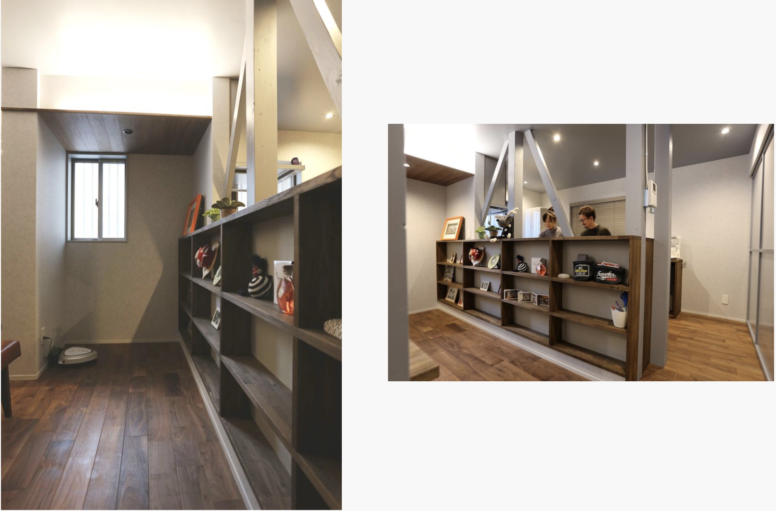 「以前あった廊下の幅が狭くて、何だか苦しそうな感じがしたんです。本当に通路のためだけにあるって感じ。それをどうにかしたいのと、リビングを広くしたいと伝えたら、高橋さんが壁を壊して廊下をなくす提案をしてくれました」