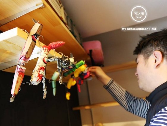 ・・・自分は、ならないんですが(笑)わざわざ有孔ボードにひとつひとつは飾らないけれど、濡れてるから乾かしたいんですよ・・・タックルボックスは棚の上に置いて、ルアーは下の棚に広げて乾燥させるみたいな感じにします?そうすると、飾ってあるようで、干してあるみたいな感じになるから。