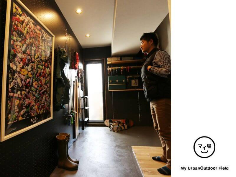 なるじゃないですか(笑)でも、土間だからひっかけてほっといたら乾くもん。気にせずいけちゃう。水が落ちても土間なんで、さっと拭ける。あとは土も同じ。長靴についてる土もほうきで掃けばいいですからね。