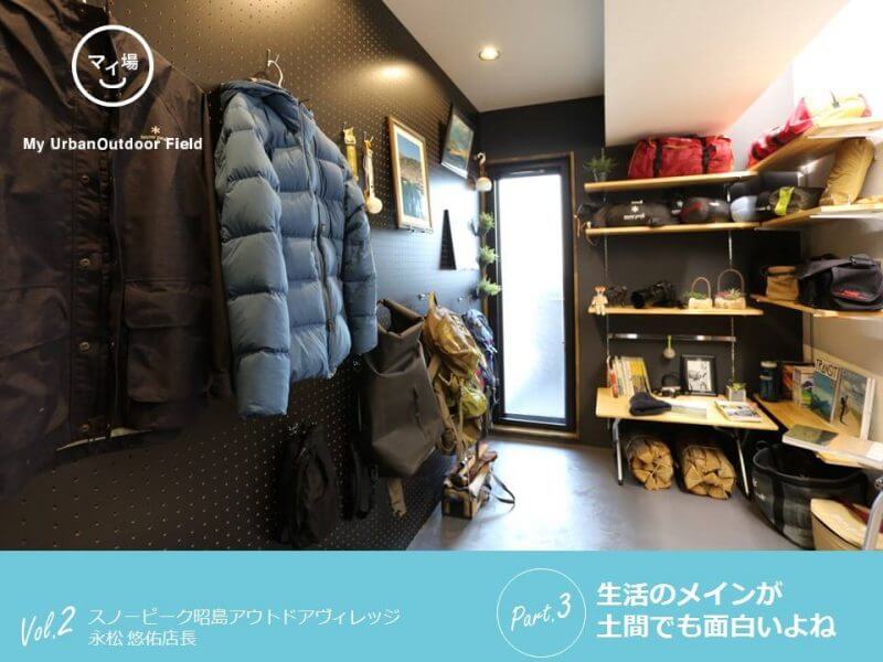 でも生活のメインが土間なのも面白いよね。こういうスペースがあるともっとスノーピークの道具が楽しめると思います。