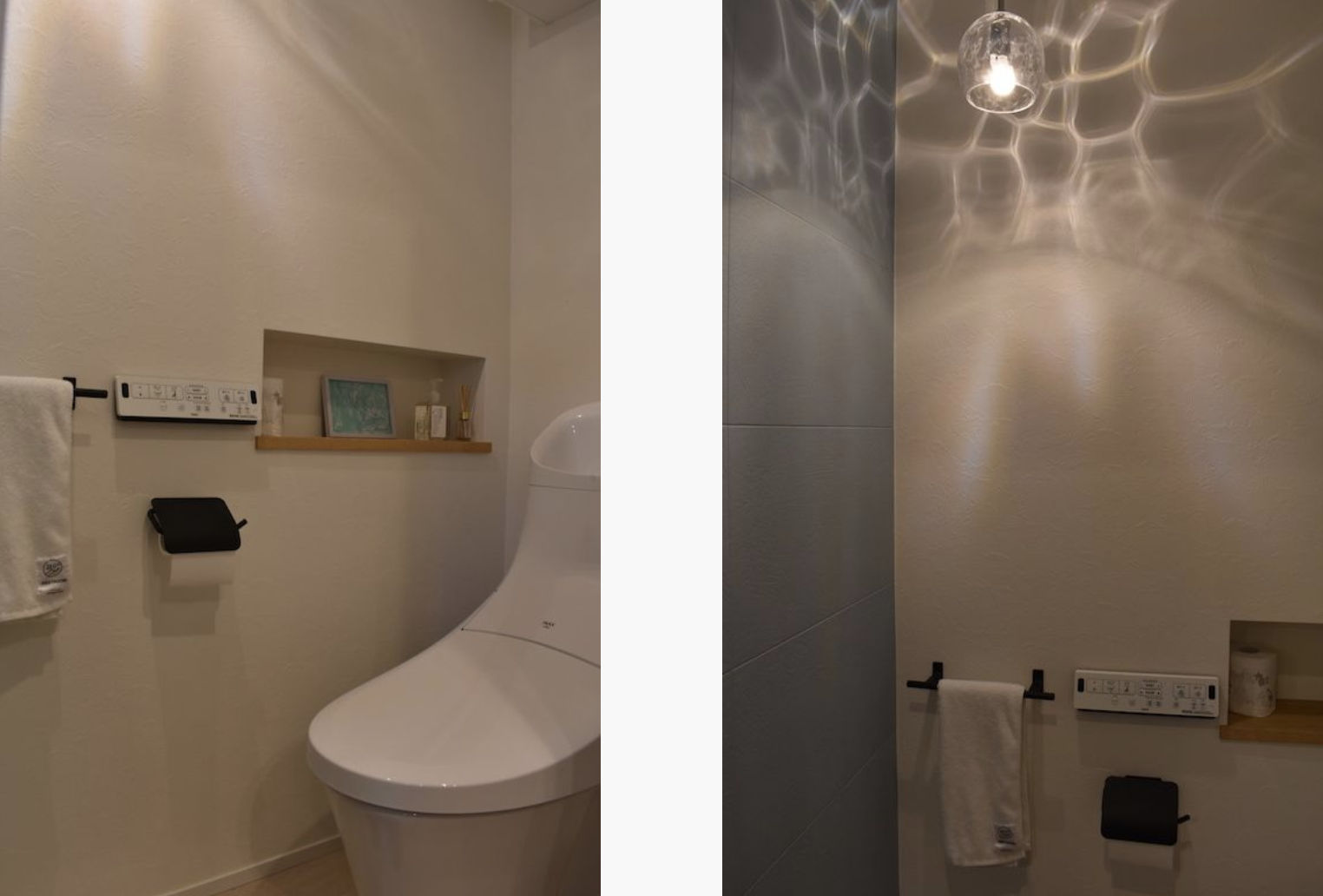ニッチでこなれた印象のトイレをよりオシャレにしているのが、こちらの照明。ゆらめく照明の光は、シンプルだけど上品。閉ざされたトイレという空間こそ個性を発揮しやすい場所でもあります。