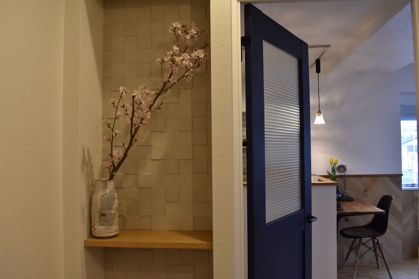 「本当は土間も欲しかったのですが、間取りを考える上でリビングを広くすること、洗面脱衣所を広くすることは欠かせなくて、土間は諦めました。でも、最終的に玄関に少し余裕が生まれたので、じゃあここにもニッチを造ろうと思ってお願いしました」