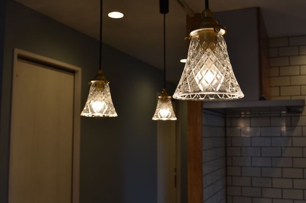 カウンター頭上にあるペンダントライトは、Oさんの好きなアンティーク調。ポイントで自分の好きなテイストを取り入れたそうです。