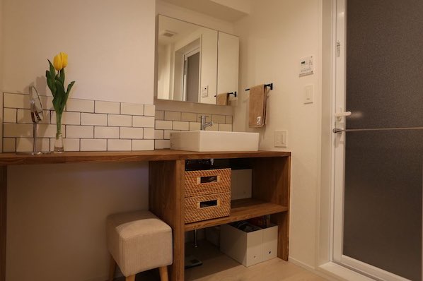 コーナー部分に設置することで、空間もスッキリしますね。リノベーションは自由度が高い分、こういったアイデアが大切でもあります。