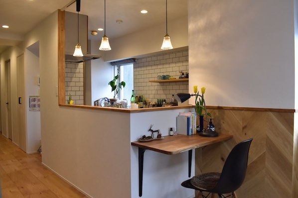 「実は、間取りを考えるのに迷宮入りしてしまった時に、WEBでいろいろ見ていたら、このスタイルを見つけたんです。息子にはリビング学習をさせたいと思っていたので、これはいいなと思って。今は私が仕事するときに使っていますが、息子が大きくなったらここで宿題をすれば私も見られるし便利だなと。カフェっぽい感じも気に入っています。」