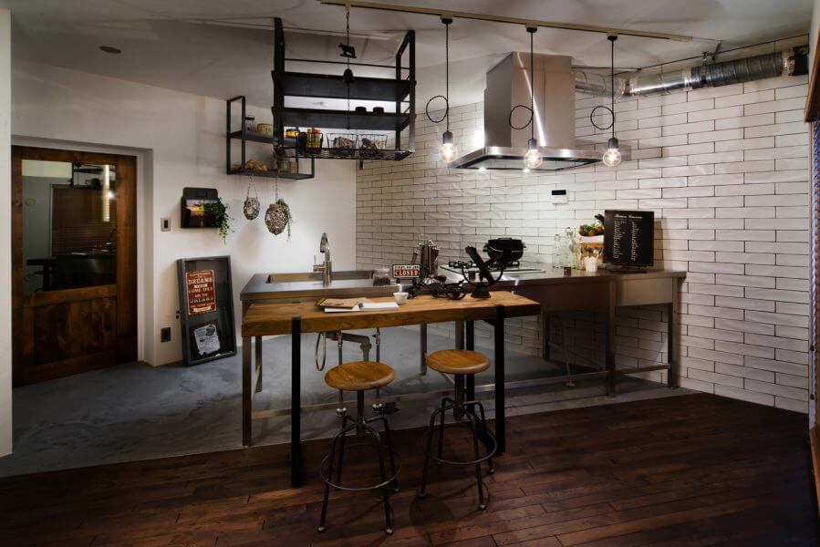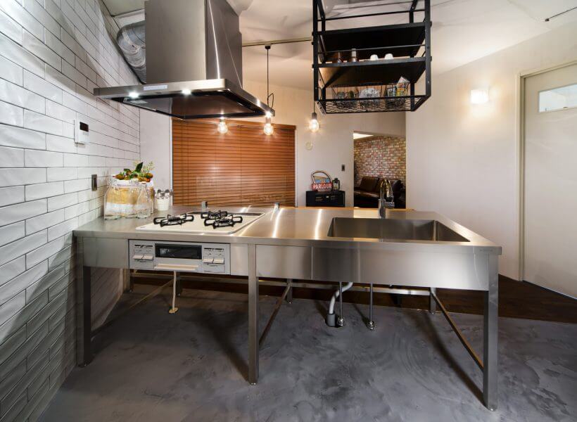 な……なんですか、このカッコイイ空間は!! コンクリートの土間が、最近はやりの“男前空間”。