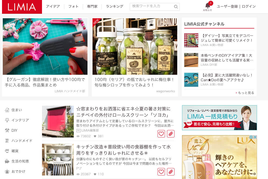 DIY・100均・リフォーム情報も満載の住まいプラットホーム Limia