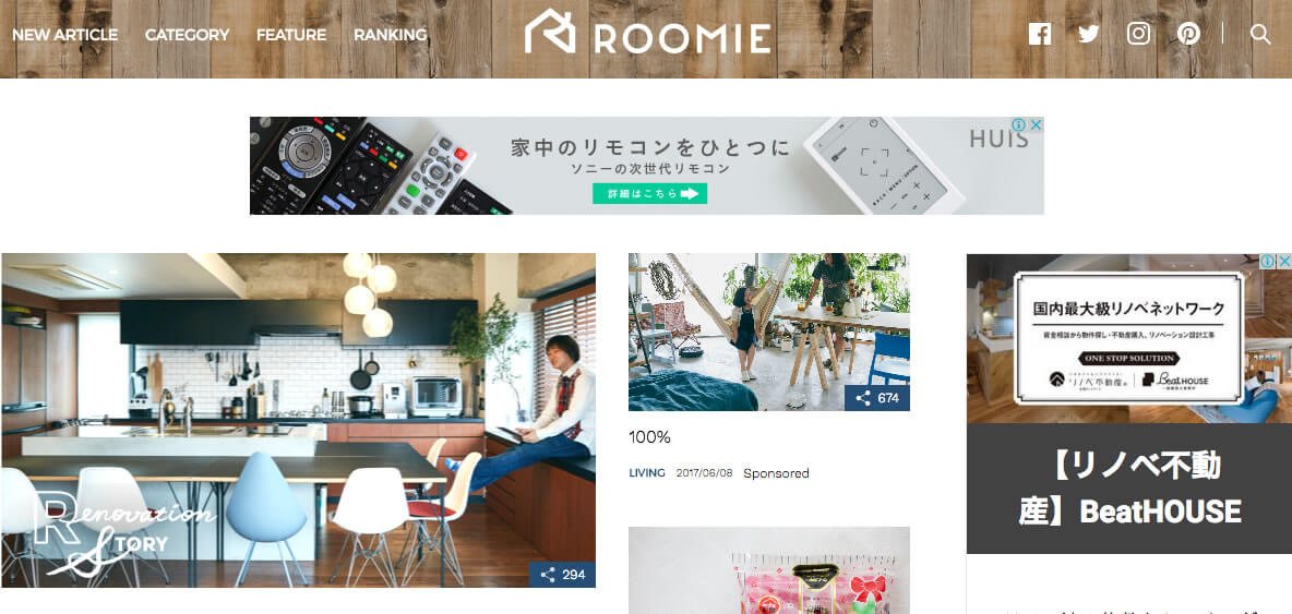 roomieは、2016年11月に大幅にリニューアルしています。女性向けの暮らしサイトが多い中、30代男子にターゲットをフォーカスしたサイトです。新メディアのコンセプトは、「好奇心と暮らす」です。こだわりのリノベーションの記事などが多いです。
