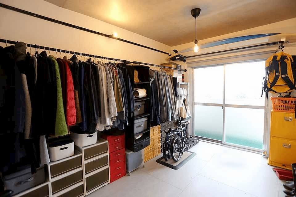 一部屋をまるっとクロゼットにした部屋。しかも土間から一続きで、靴も直置き、着替えてそのまま外出できるという、自分のライフスタイルを明確にしていったことで叶えられたデザインです。