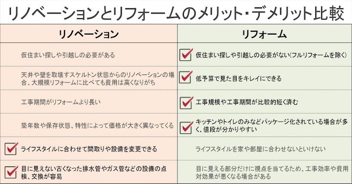 【おさらい】リフォームとリノベーションのメリットとデメリットの比較