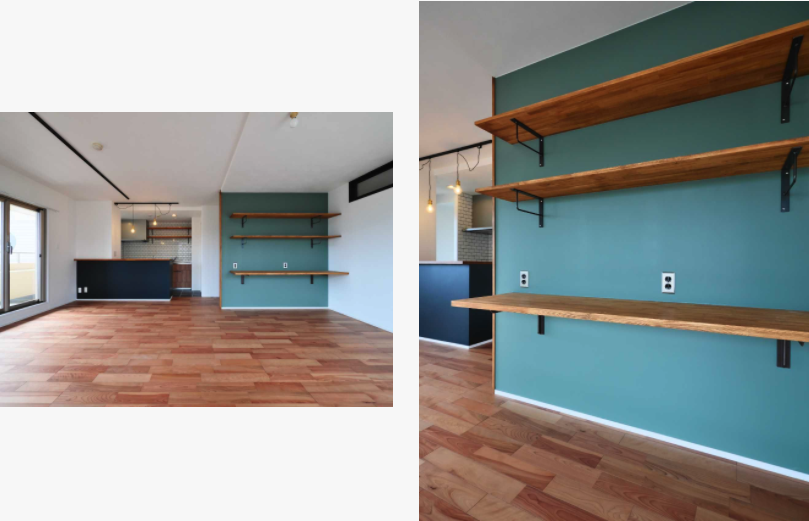 例えばこちらの家では、キッチンカウンター越しの収納を利用して書斎スペースを設置。個室ではありませんが、三方を壁に囲まれて作業に集中できるスペースを確保しています。